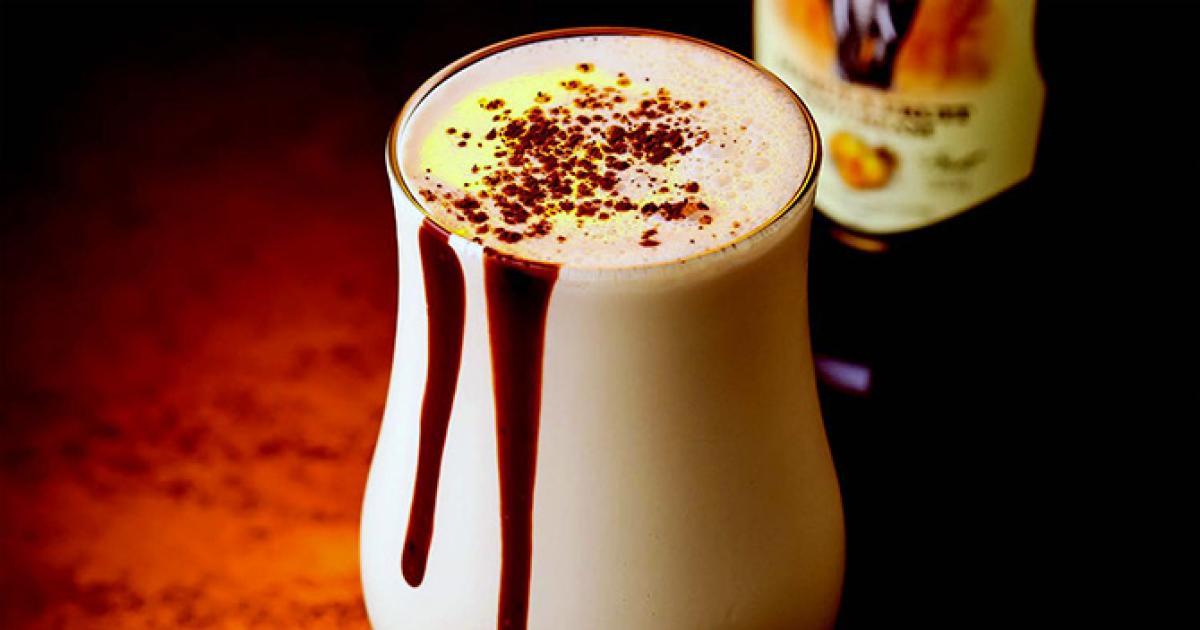- Pour into a tumbler. When serving, garnish with shavings of white and dark chocolate.