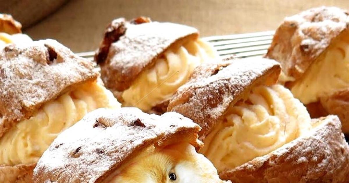 The first post of Dogs In Food was a pic of a 'Pomeranian looking extra cozy in a cream puff', and there has been no looking back since then.