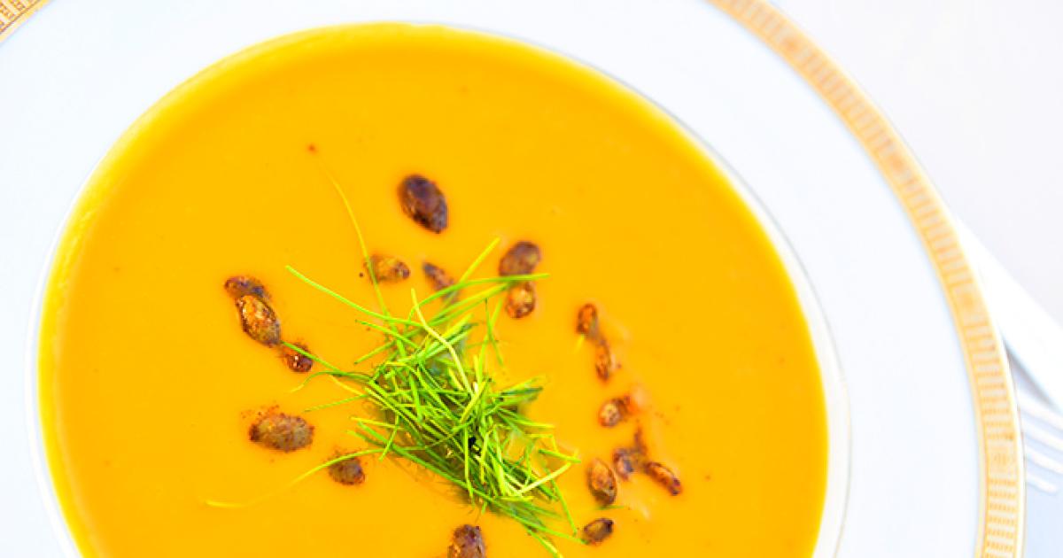 It starts with sweet potato soup with wild micro chives, leeks and organic yam. The menu may be exotic, but it's all going to be very healthy. Photographs:Rodin Eckenroth/Getty Images