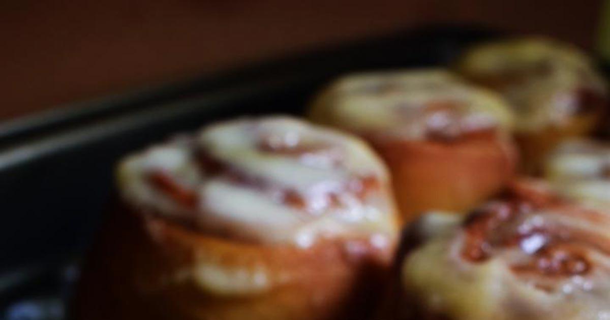 Once the rolls have been taken out from the oven, spread the cream cheese frosting on them while still warm.