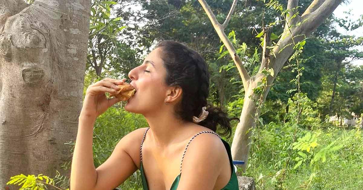 She sits amidst the jungle brush on a Sunday, all by herself, in the comfiest slip dress that could pass off as the hari chutney to her delicious samosa!