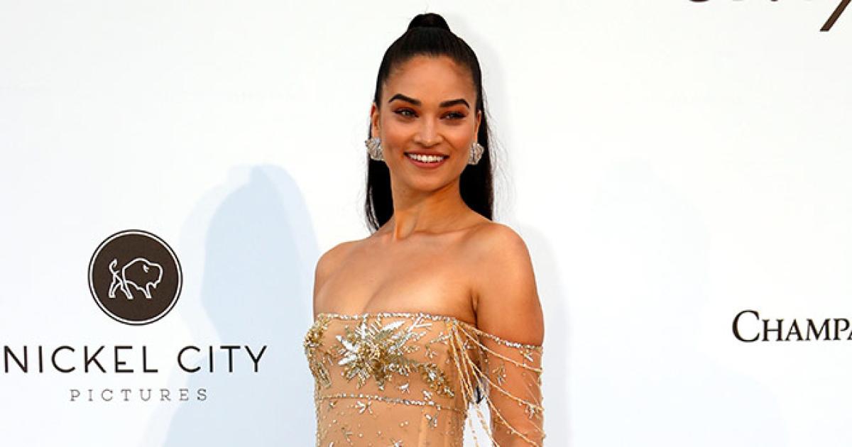 IMAGE: First up we have Shanina Shaik who left little to the imagination in a see-through gown in gold. Photograph: Eric Gaillard/Reuters