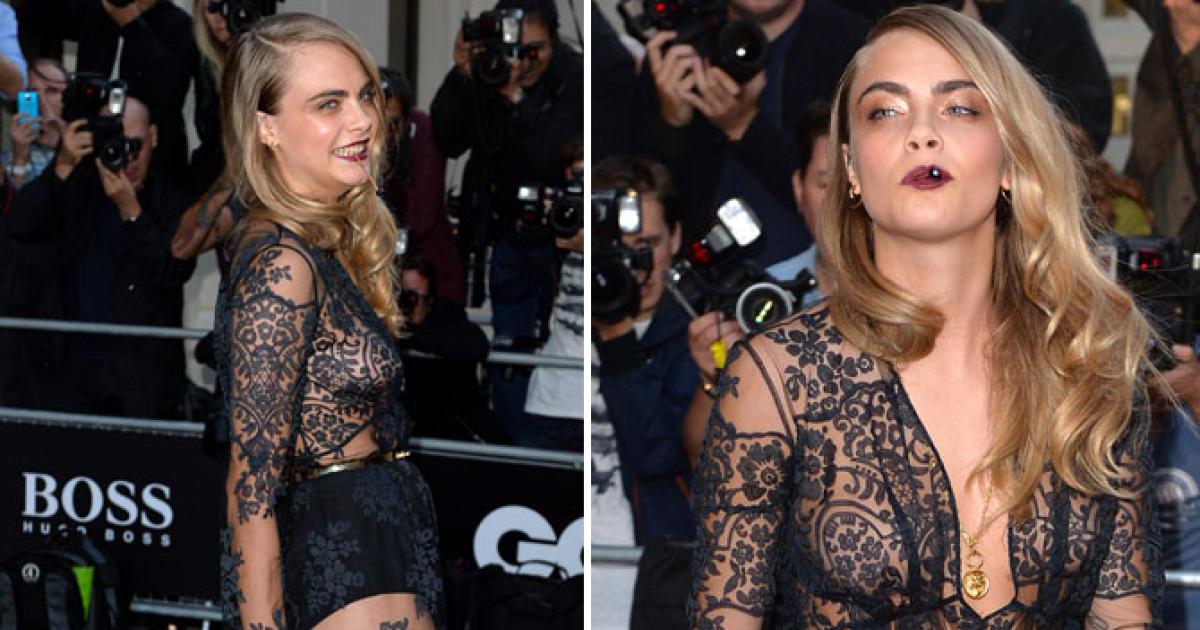 Dressed in a sheer lace Burberry dress, Cara showed off her supermodel figure that makes her so famous (and rich).