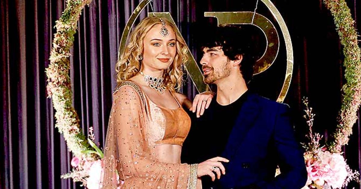 We begin with Sophie Turner, who looked gorgeous in Sabyasachi lehenga. With her hair worn in soft curls, she rounded off the look with an emerald necklace. Photograph: Adnan Abidi/Reuters