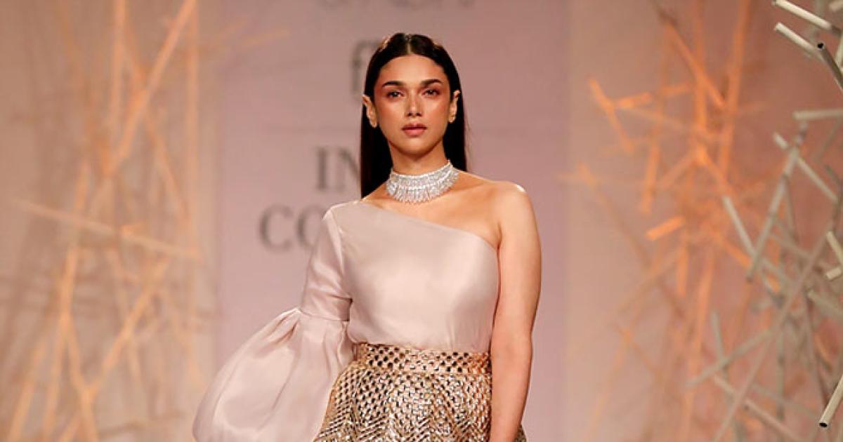 Aditi Rao Hydari looked ethereal as she turned showstopper for designers Pankaj and Nidhi for their debut couture collection titled Mosaiq.