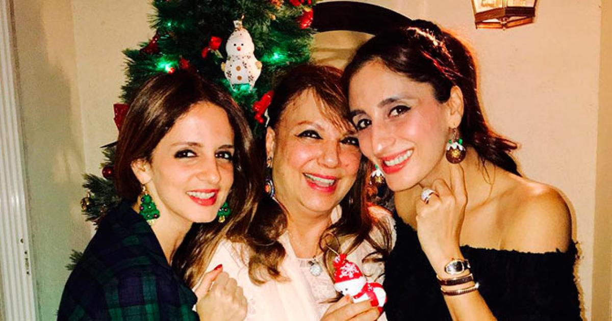 Farah posted this picture on Instagram and wrote: 'Happy three some. Mom, Suss and I. Don't miss @suzkr and my earrings #christmastime'