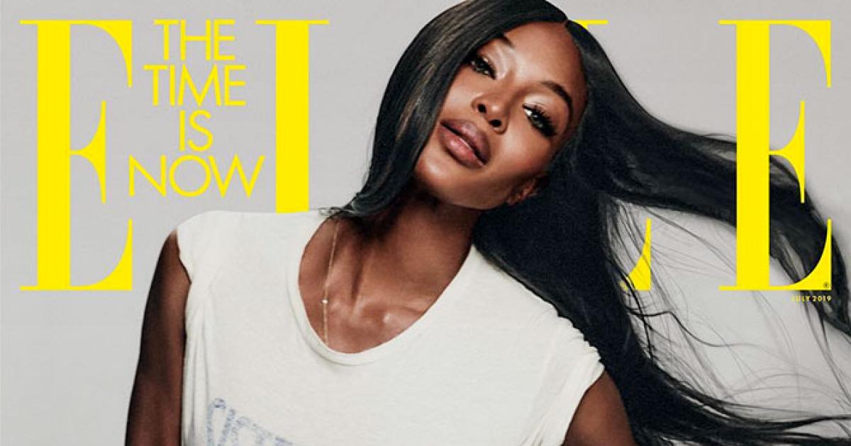 Putting her dusky skin and incredible legs on display, supermodel Naomi Campbell showcases her fashion forward side on the cover of Elle mag.