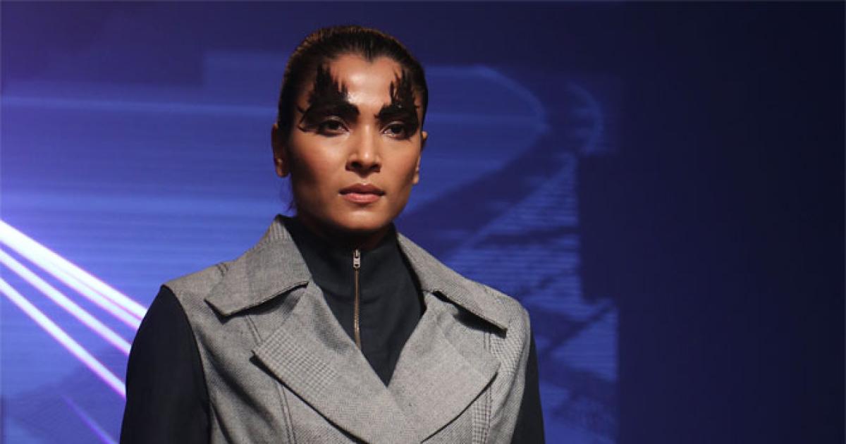 Sanea Shaikh wears pleated pants with an oversized jacket from their collection.