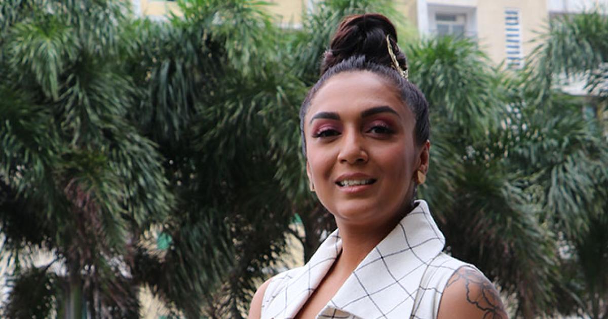 Shveta Salve who shared her motherhood and fitness goals looks ultra-glam in this black and white Chola separates. Photograph: Rajesh Karkera/Rediff.com