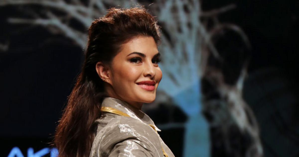 IMAGE: Jacqueline introduces the modern 'Punjabi Suit' from Rajesh Pratap's latest collection. There is a buttoned up shirt worn over cigarette pants and a flouncy skirt. And a jacket to enhance the showstopping entry.