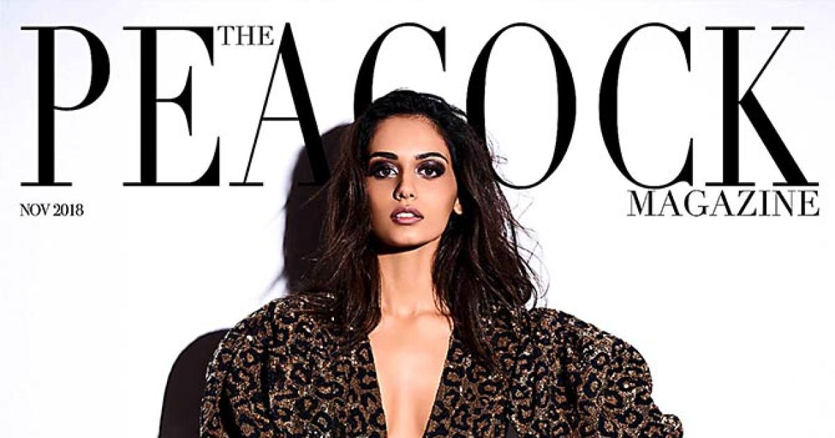 Dressed in a printed Falguni Shane Peacock dress, with puffed sleeves, Manushi Chhillar cut an impressive figure on the latest cover of The Peacock Magazine.