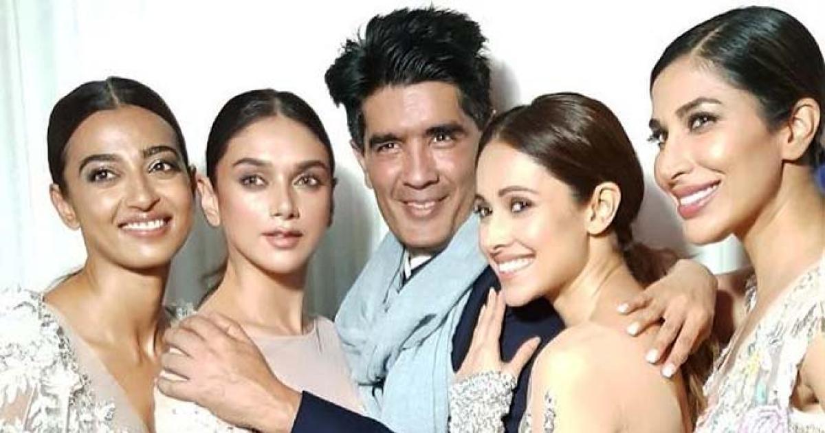 Manish Malhotra flanked by his four leading ladies. While Aditi Rao Hydari, Radhika Apte and Nushrat Bharucha walked the ramp for the designer, Sophie Choudry hosted the show.