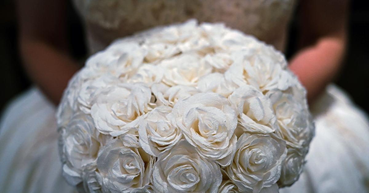 Dainty yet pretty...a wedding bouquet made of toilet paper.