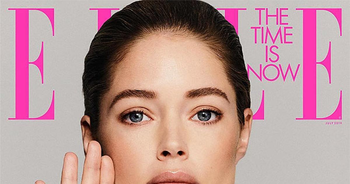 Baring is all, the model flaunts her elephant knot on Elle USA's July 2019 cover.