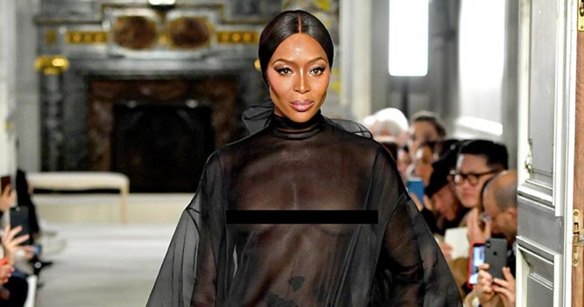 Naomi Campbell, who returned to the Valentino runway after 14 years, left little to the imagination.