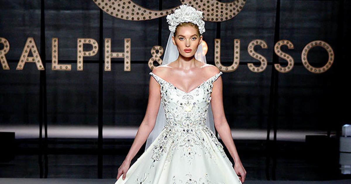Elsa Hosk makes a smashing entry in a bridal gown. 'You know it's couture when it takes four people to carry the dress!' the model wrote on Instagram. 'Thank you Ralph & Russo for having me close my very first couture show as the bride.' Photographs: Francois Durand/Getty Images
