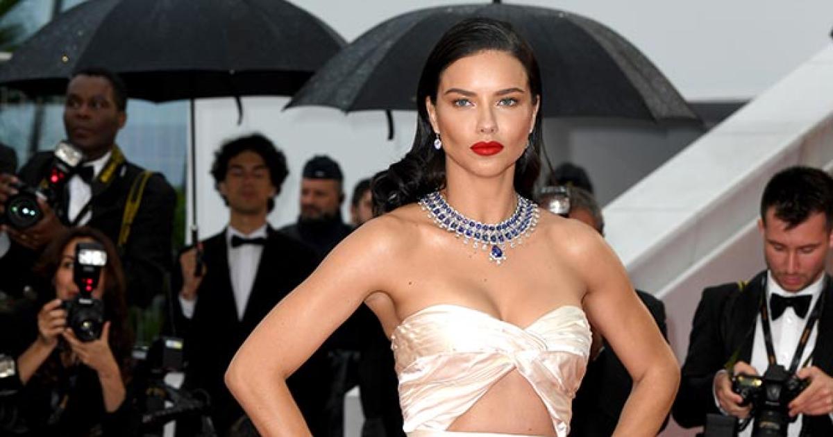 Adriana Lima showed some serious skin in a thigh-high slit gown with a cutout bodice. Photograph: Pascal Le Segretain/Getty Images