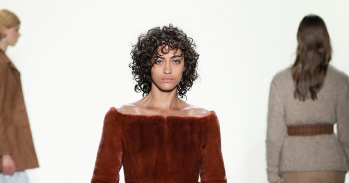 IMAGE: Here's a mink coat with denims showcased at the Brock Collection Fashion Show. The play of an off-shoulder mink coat with denims looks lovely and was a welcome change to the usual runway dressy red-carpet outfits.