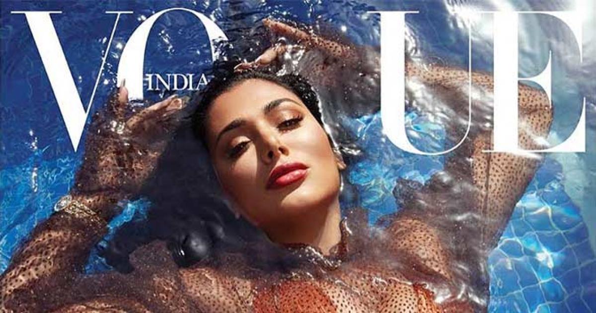 Making a splash on the cover of Vogue, Huda Kattan sets the temperature soaring as she poses in the pool.