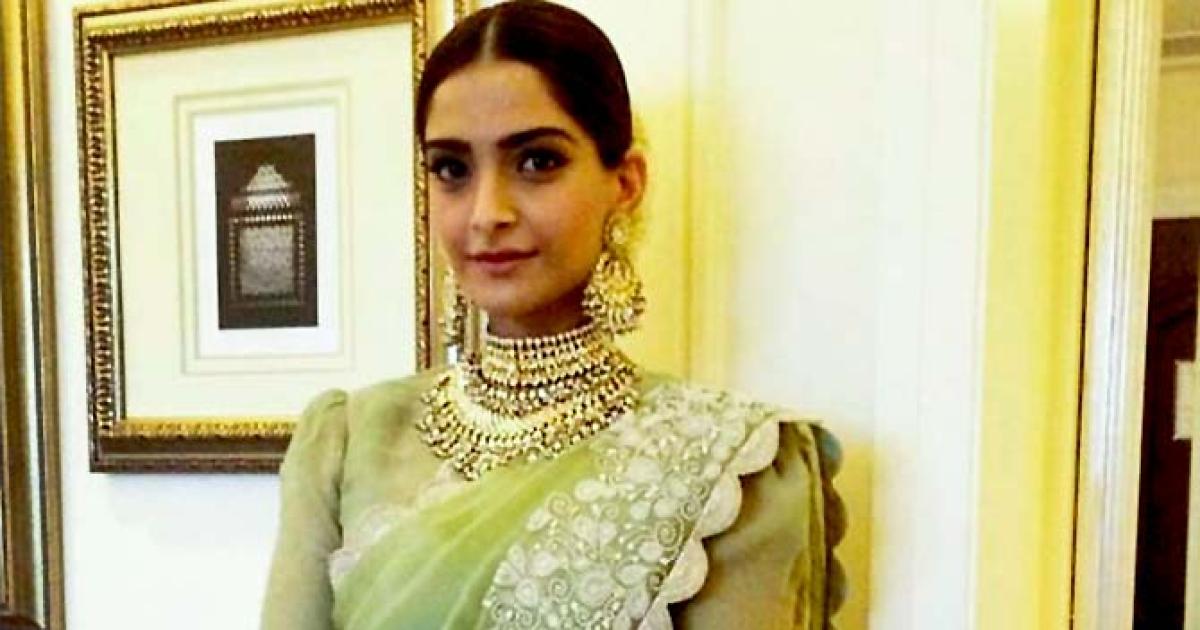 IMAGE: Sonam Kapoor looked gorgeous in this pastel green Anamika Khanna sari which she wore to the National Awards. She completed the look with a choker and elegant earrings.