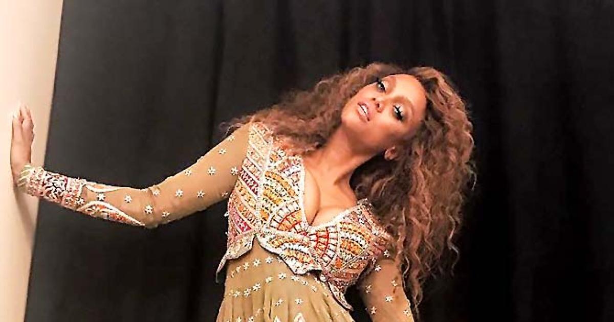 Tyra Banks was recently spotted in a lovely dress by Indian designers Abu Jani and Sandeep Khosla on America's Got Talent.