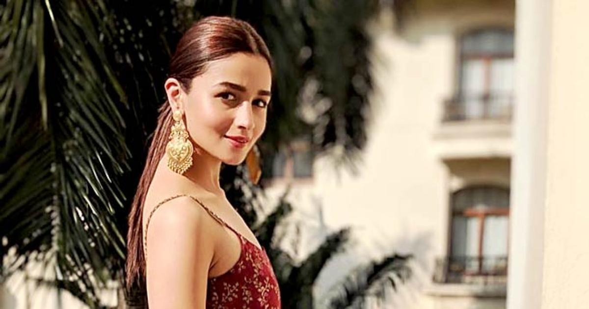 Alia Bhatt stepped out in a Sabyasachi red kurta paired with a velvet gharara and a hand-embroidered organza dupatta.