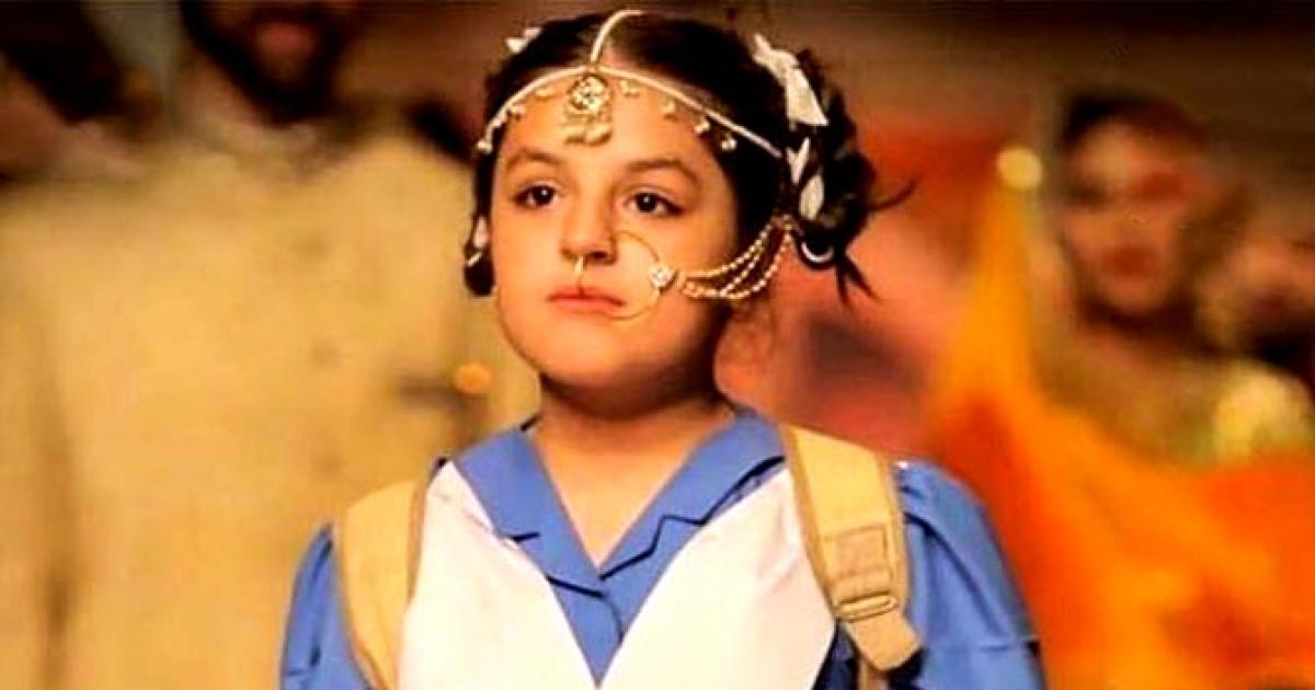 The girl, dressed in a blue and white salwar kameez wore a maang tikka over her braided hair. She was also carrying a school bag.
