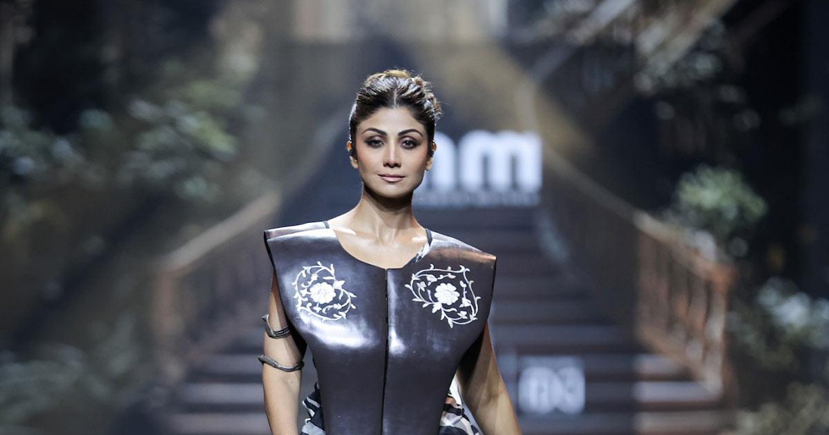 Draped in a zebra-striped sari and a stunning sculptural blouse that paid tribute to the art of wood carving, Shilpa Shetty was a modern ramp queen.