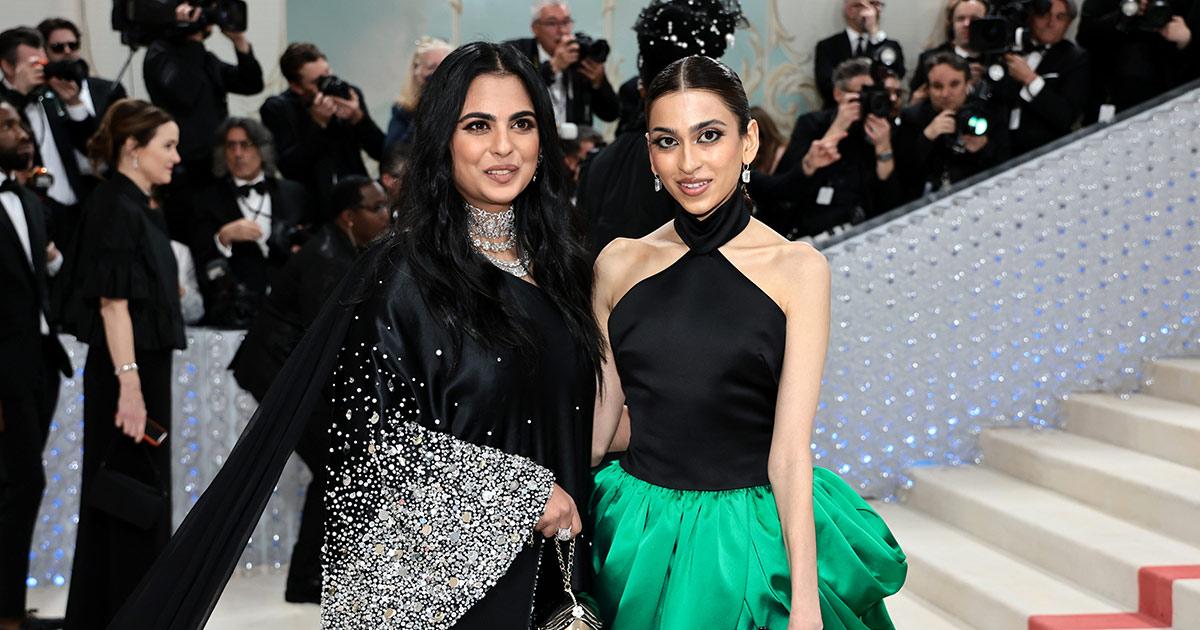 Alia Bhatt bathed in pearls. White-gloved diva-memsahib Priyanka Chopra. Futuristically-clad Natasha Poonawalla. Isha Ambani in a shiny, glossy black satin gown. Isha was accompaniedby Divya Mehta Jatia in a sculpted halter neck and skirt.