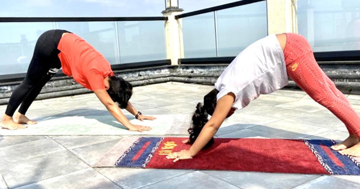 These poses will help you stretch and strengthen your bodies, says Sabrina Merchant.