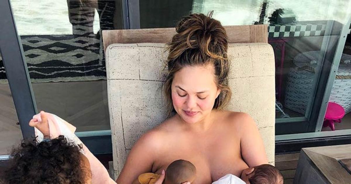 Recently, Chrissy posted a photo to Instagram where she is seen breastfeeding her six-week-old son and her daughter's baby doll.