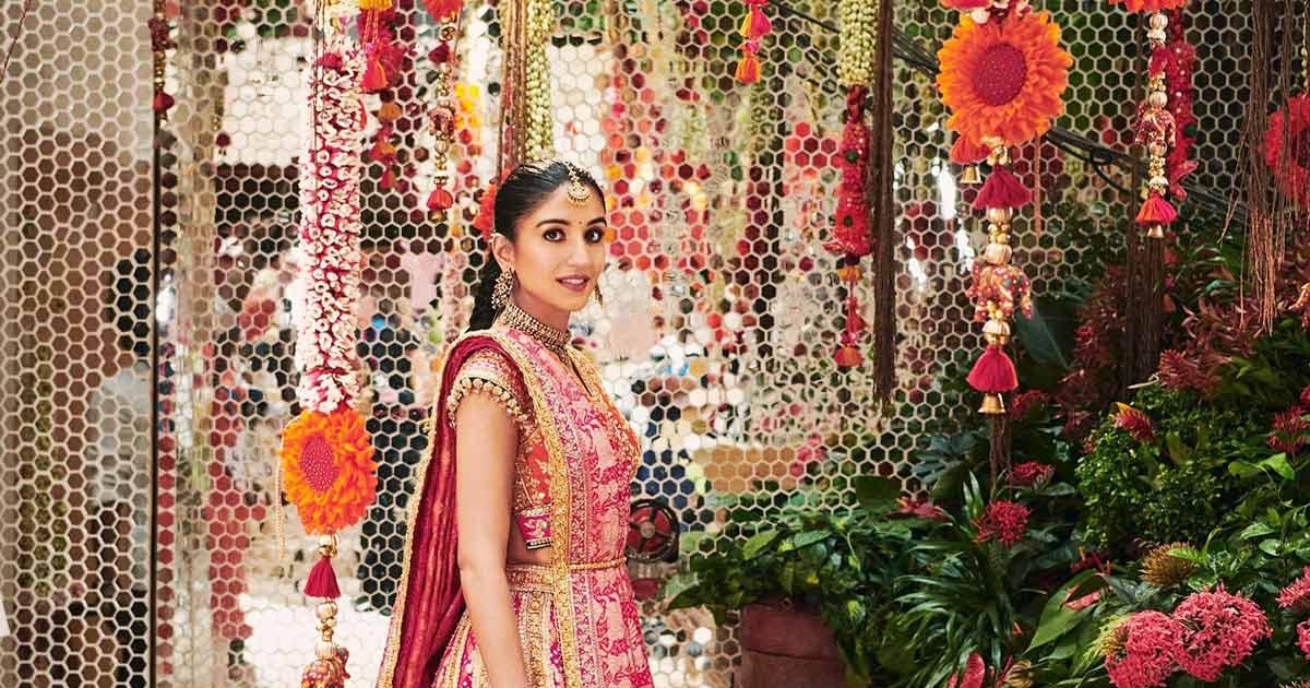'The vintage koti blouse features detailed metallic threadwork and Swarovski tassels. Each panel of her 35-meter bandhani lehenga bridges tradition and celebrations with deep-rooted elegance.'