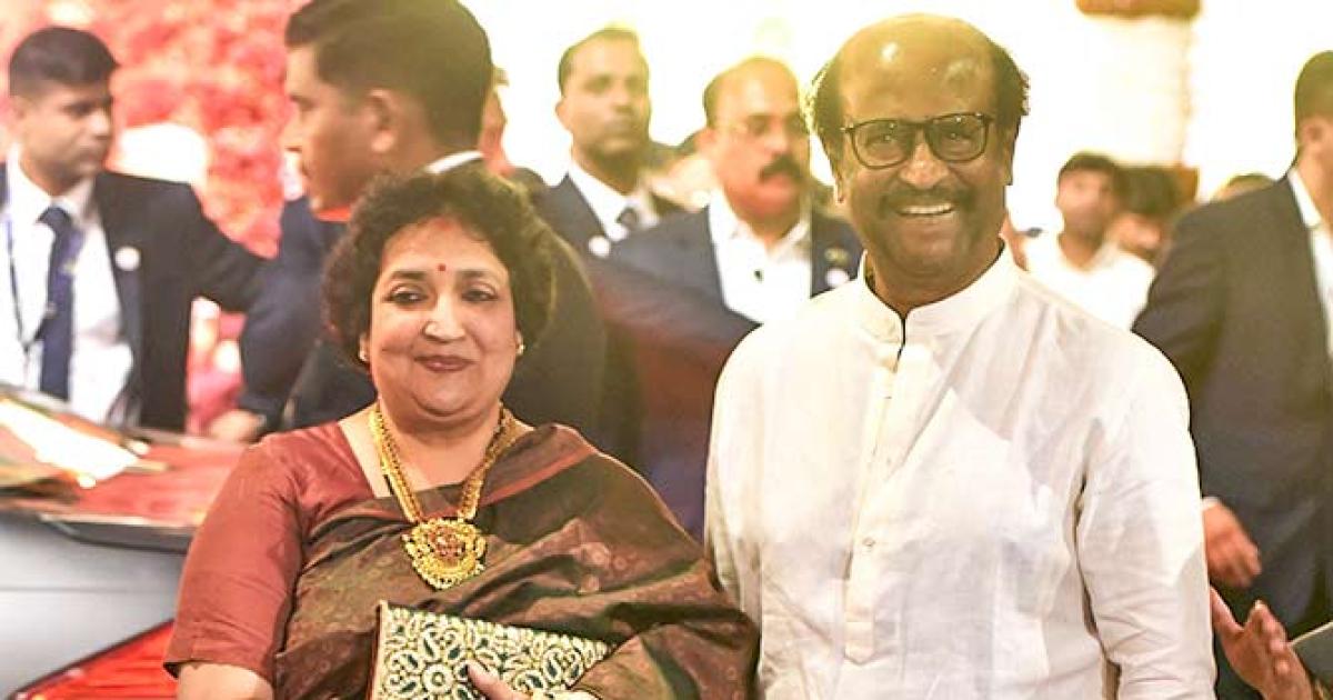 IMAGE: Actor politician Rajinikanth, one of the star attendees of the evening came with his wife Latha Rangachari. Photograph: Pradeep Bandekar