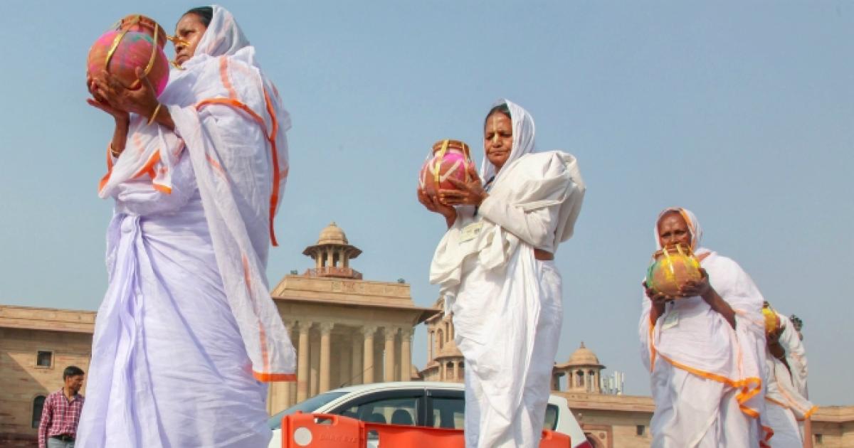 Widows from Vrindavan reach New Delhi with the gulaal and sweets for Modi.