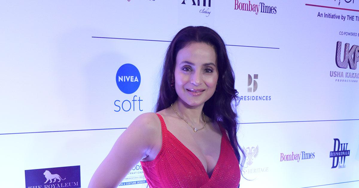 Ameesha Patel, last seen in the blockbuster hit Gadar 2, made a red-hot entry in a chota little bodice dress designed by Rocky S, who presented his fall/winter line-up at the fashion week.