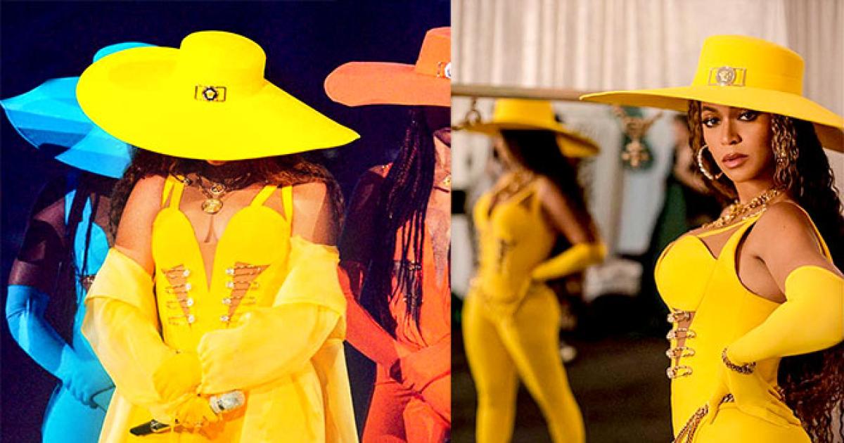Beyonce stands out in a yellow Versace cutout suit with a matching coat and cape.Photographs: Kind courtesy Beyonce/Instagram