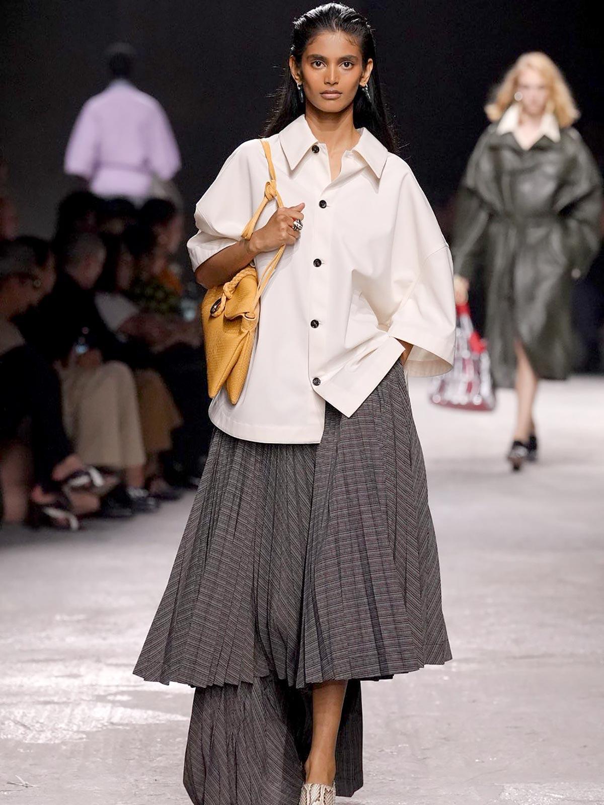 IMAGE: Walking for Matthieu Blazy is every model's fantasy and Bhavitha lived it in an oversized white shirt styled with a grey asymmetrical skirt and a pop of yellow with her bag.