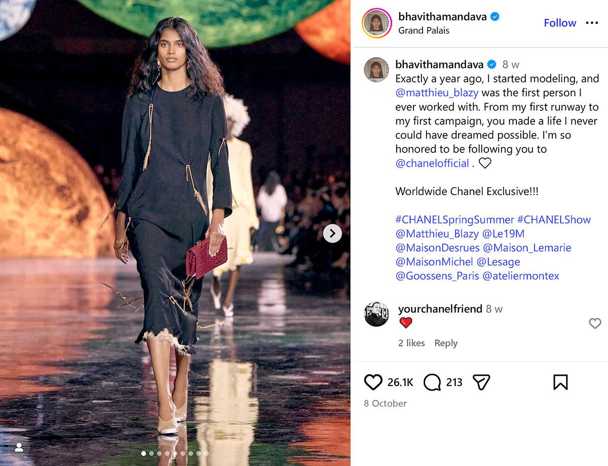 Cut to December 2025 and Bhavitha is making history as the first Indian to open a Chanel runway show, standing tall among the biggest global faces and rewriting what representation looks like in fashion.