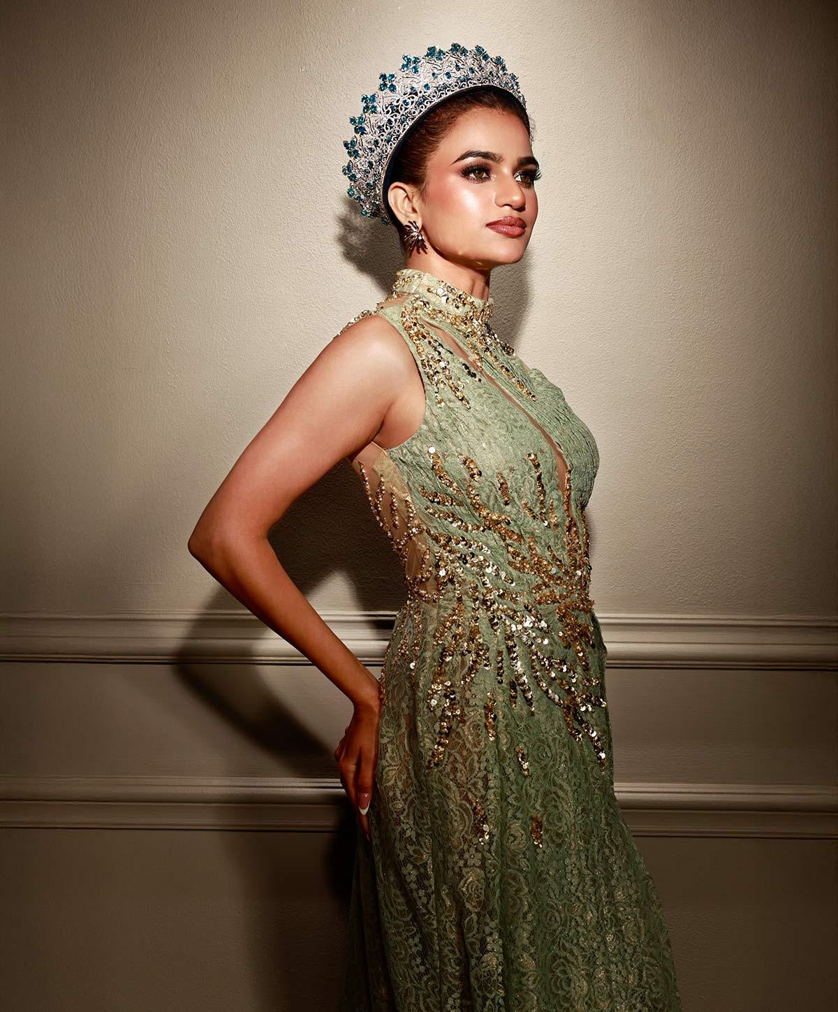 Her inspirations are fellow small-town achievers and crown holders Harnaaz Kaur Sandhu and Priyanka Chopra Jonas, women who showed her that no dream is ever too small.