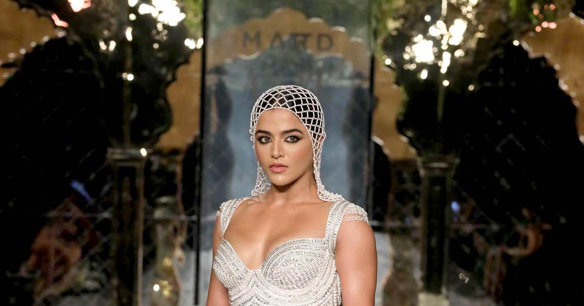 Wamiqa walked in against a haveli-inspired backdrop, wearing an ivory lehenga with resham embroidery, pearls and crystals.