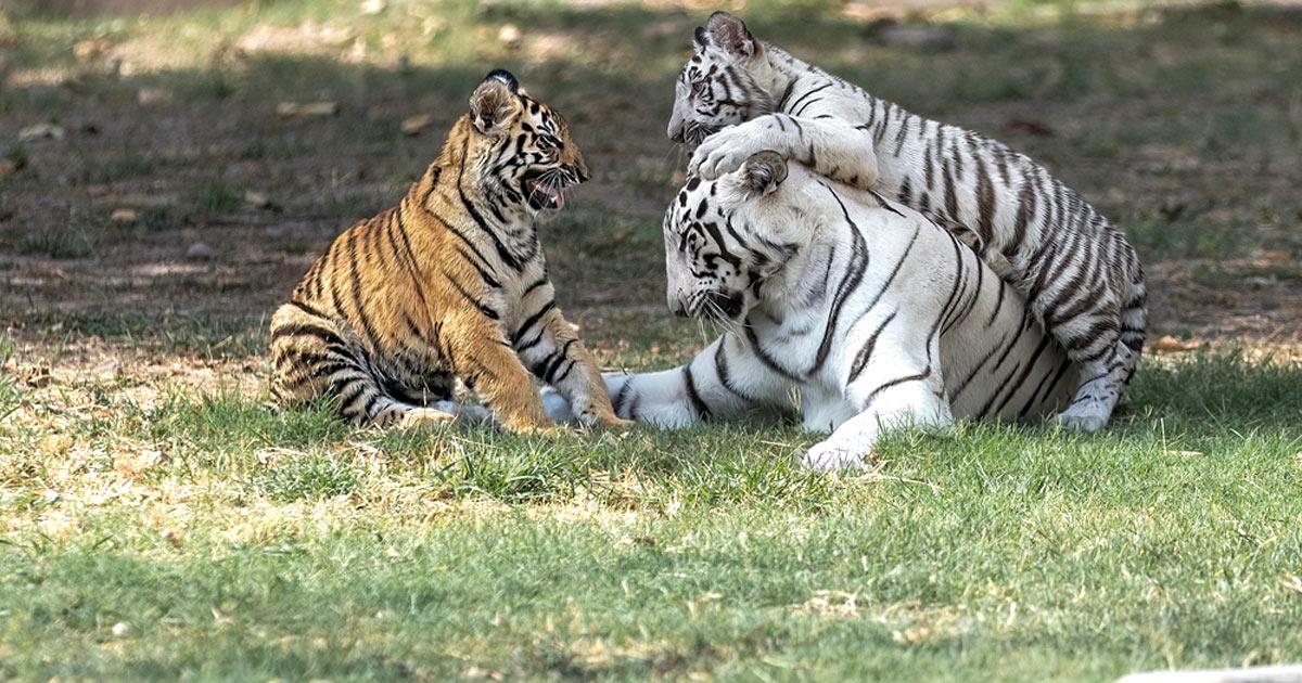In the dappled wilds of Chhatbir, Punjab, where the silence is broken by rustling leaves, the soft purr of e-carts and an occasional playful growl, a white tigress named Gauri is raising two rambunctious cubs -- Aryan, the snowy spark, and Abhay, the golden flame.