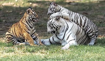 In the dappled wilds of Chhatbir, Punjab, where the silence is broken by rustling leaves, the soft purr of e-carts and an occasional playful growl, a white tigress named Gauri is raising two rambunctious cubs -- Aryan, the snowy spark, and Abhay, the golden flame.