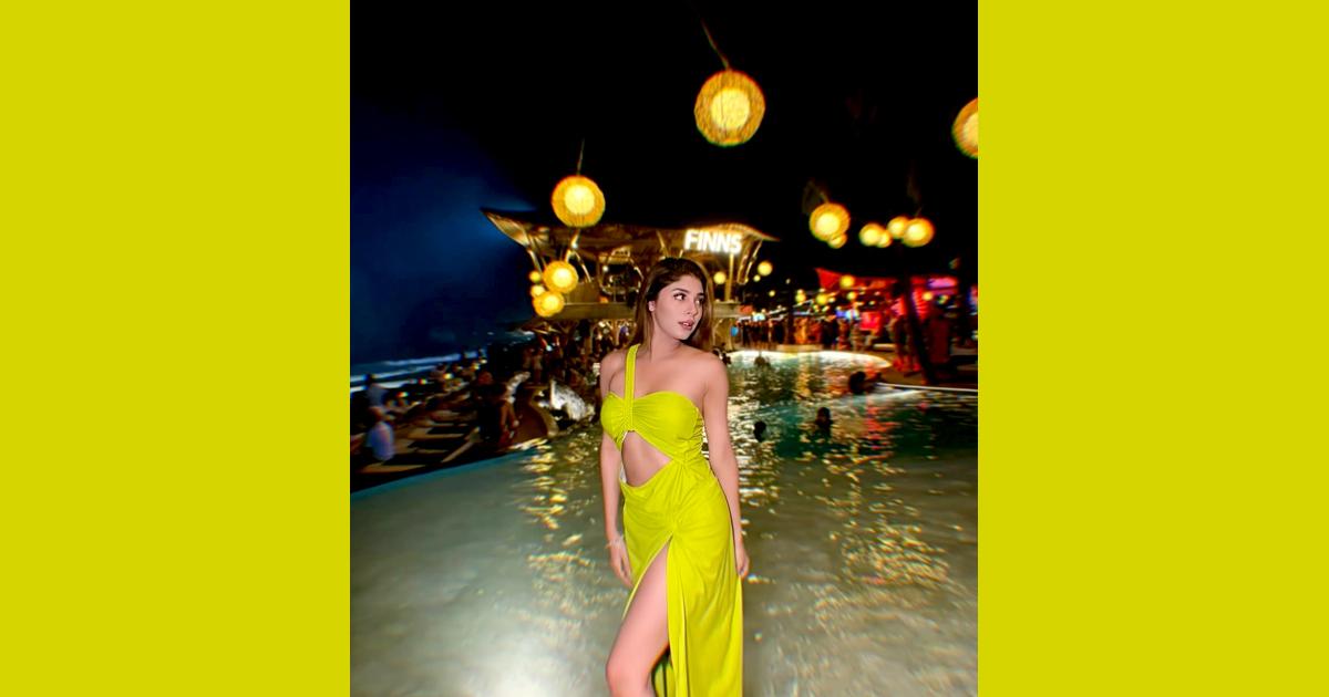 IMAGE: Spotted by poolside, she wowed in a stunning yellow cut-out dress. All Photographs: Kind courtesy Adrija Roy/Instagram