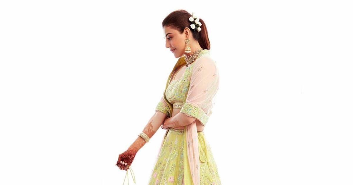 While we have been bowled over by Kajal's wedding lehenga, it's hard to ignore the romantic story that's woven into her Gaur Pooja outfit.