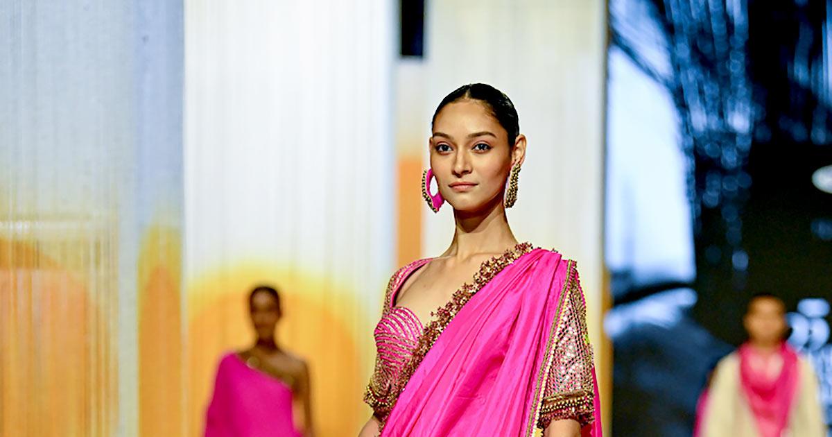 Niki Mahajan’s vibrant collection blended the opulence of baroque and French brocade with the raw, earthy beauty of khadi, creating a stunning fusion of tradition and grandeur.