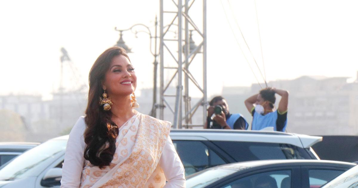 Dressed in a white and gold mekhela chador, the former Miss Universe was elegance personified. Her statement jhumka and radiant smile were the only accessories she needed.