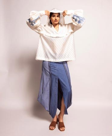 IMAGE: Model Nisha Yadav's dhoti style skirt came with a slit.