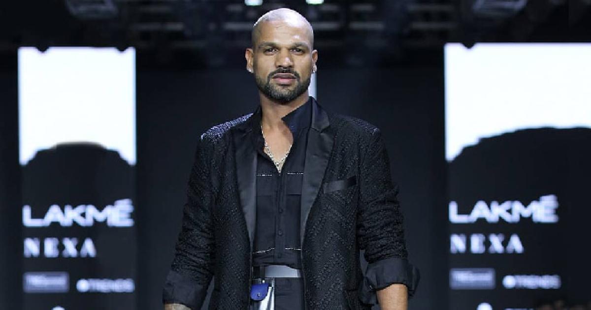 IMAGE: Looking dapper in a black kurta, jacket and matching trousers, Shikhar Dhawan walked the ramp for designer Samant Chauhan. Photographs: Courtesy Lakme Fashion Week/Instagram