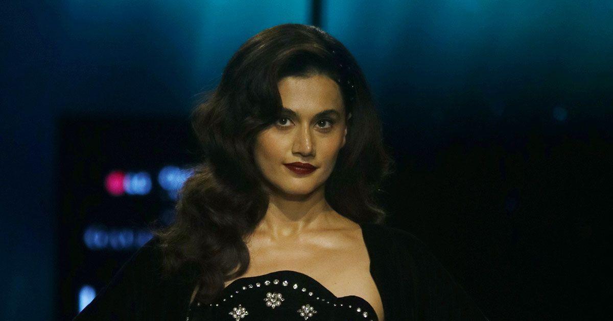 IMAGE: Wearing her hair in waves, her lips a dark shade of burgundy, Taapsee owned the moment.