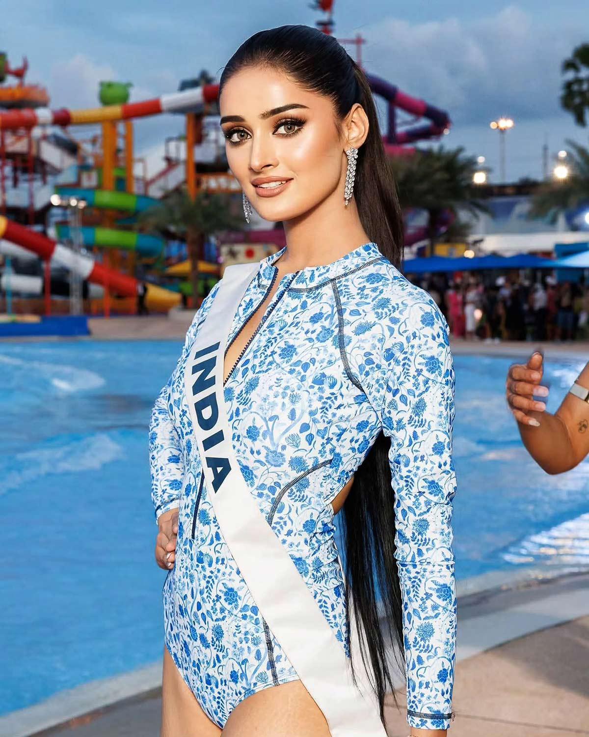 IMAGE: For the swimsuit round, Manika rocked a royal-blue monokini that was simple yet striking.